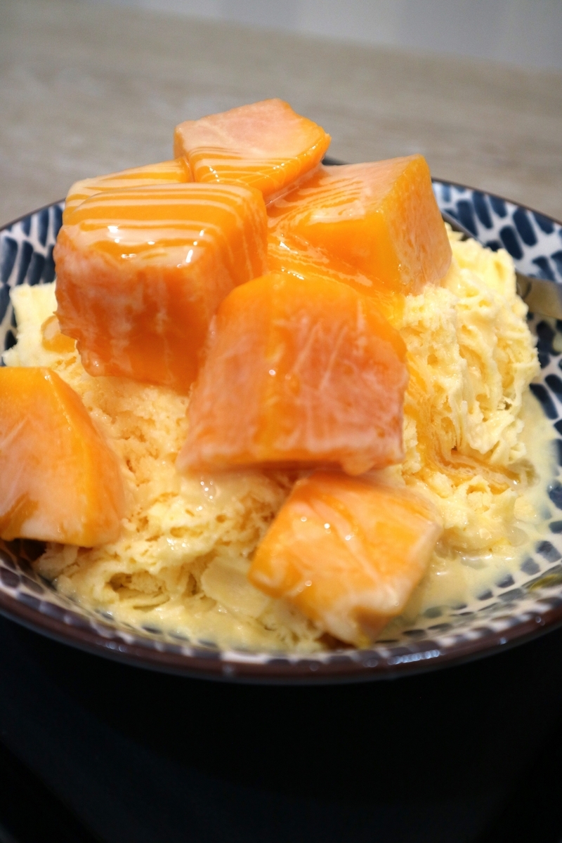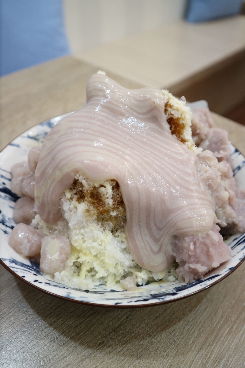 タロイモのソースがかかったかき氷、それとマンゴーかき氷を注文。タロイモの方は通常の氷が使われている。台湾で雪花氷を食べ慣れてしまうとただの氷のかき氷では物足りないうえにあまり美味しく感じられなくなってきているという弊害が起きていることに気づく。ただの氷では味気ない。氷そのものは当然味が無いからそれ自体が美味しいということは無い。結局は氷の上に欠けられたソースで味わうことになる。一方のマンゴーかき氷の方は、これは雪花氷だ。特にこの店のものは氷がマンゴーと同じ色をしているからマンゴーの果汁が一緒に練りこまれているのかも知れない。やはり美味しい