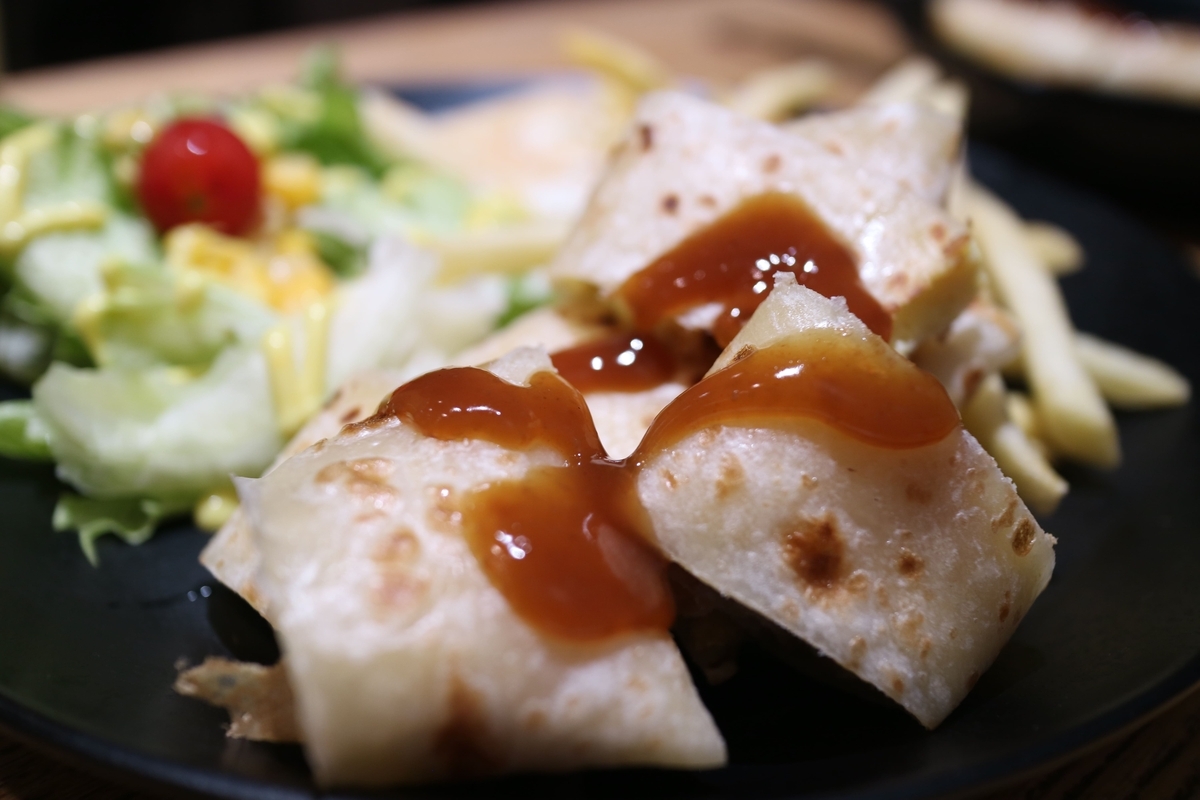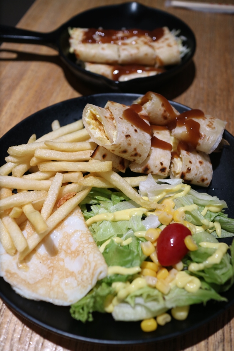 味の方だが、蛋餅の生地は薄くて硬い。他の店のようなモチモチとした食感に乏しい。もしかしたら生地を店内で作っていないのかも知れないという予想が頭をよぎる。一方で、台湾の朝ごはんやでそんなことがあるだろうか、とも